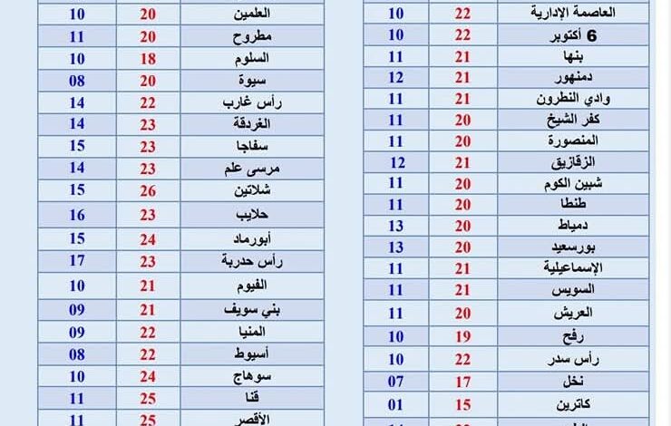 والعظمى المتوقعة اليوم القاهرة الكبرى 21 درجة.
