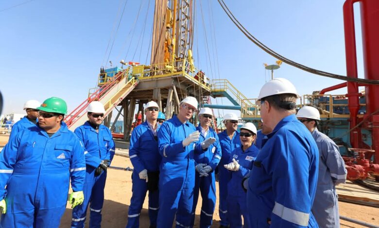 بدأت الجولة بتفقد المهندس كريم بدوى يرافقه المهندس خالد منير رئيس شركة بتروبكر للبترول وايمان هيل المدير العام لشركة فالكو انرجي بمصر، بدء اعمال الحفار البترولى البرى EDC64 التابع لشركة الحفر المصرية والذي يقوم حالياً بحفر بئر تنموي انتاجي “ارطا 92” التابع لشركة بتروبكر للبترول .