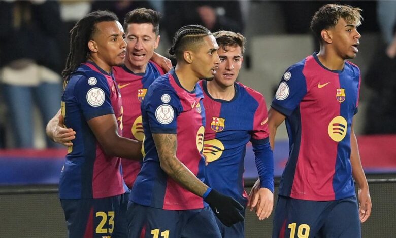 خط الهجوم: لامين يامال، روبرت ليفاندوفسكي، رافينيا.