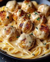 - أضيفي المكرونة إلى الصلصة وقلبيها لتغطيتها بالتساوي. أعيدي كرات الدجاج إلى المقلاة وضعي الصلصة فوقها بملعقة.
