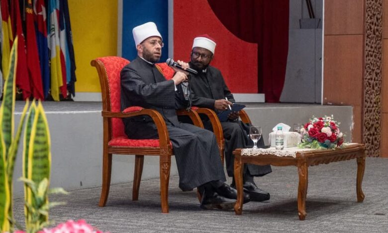 وقد ألقى وزير الأوقاف محاضرة في قاعة أحمد شاه بأكاديمية الشرطة الملكية الماليزية،