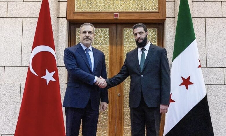 وزير الخارجية التركية هاكان فيدان يلتقي بقائد إدارة العمليات العسكرية في سوريا أحمد الشرع بالعاصمة دمشق