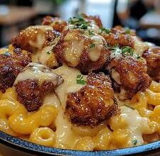 مكرونة بالجبنة وصوص العسل والفلفل و مكعبات الفراخ